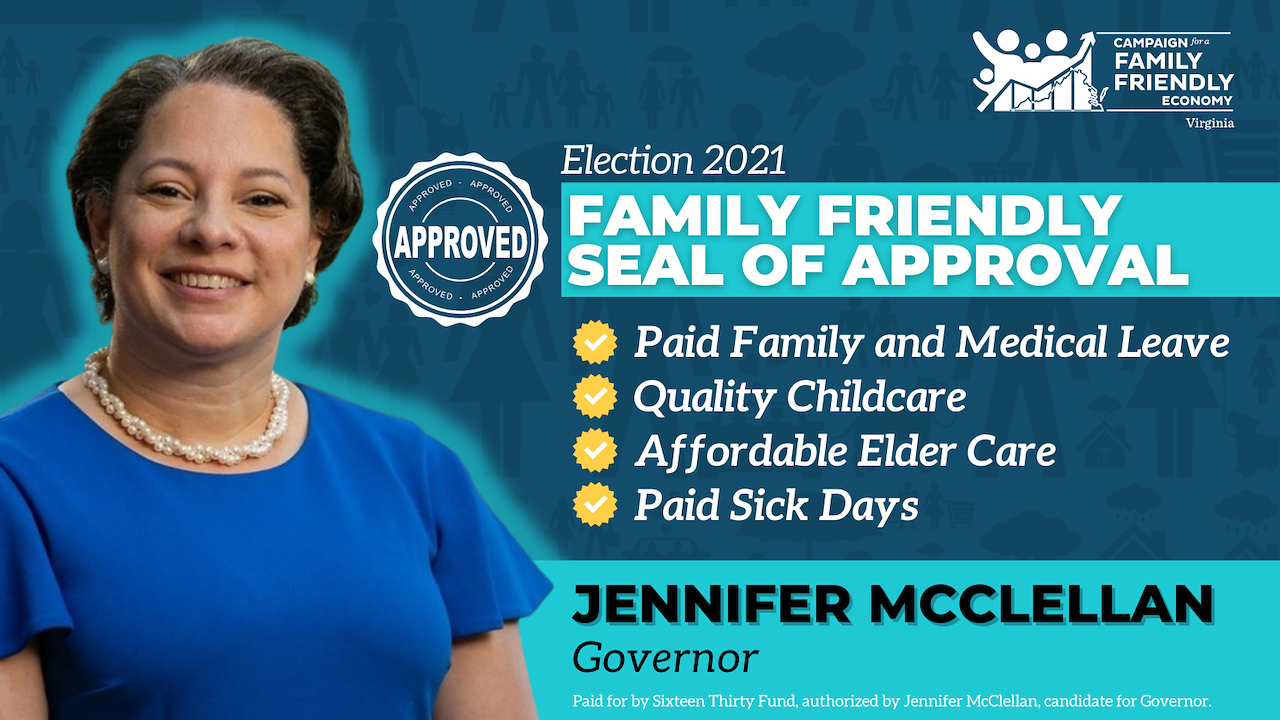 Twitter Graphic - Endorsement - Virginia Campaign for a Family Friendly Economy (August 2021)
