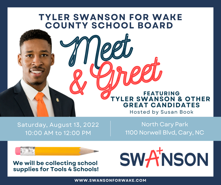 Facebook Post - Meet & Greet - Tyler Swanson for Wake County School Board (August 2022)